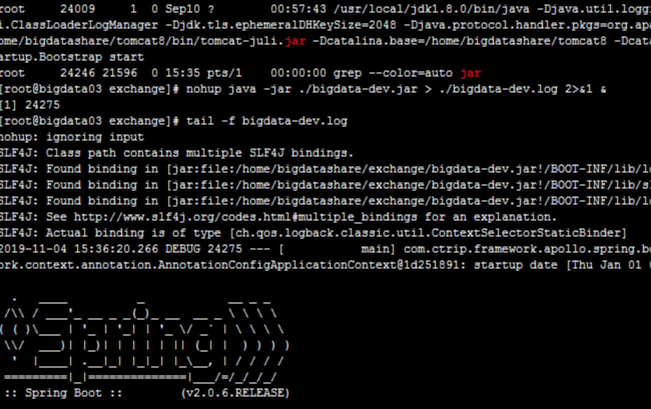 执行命令:nohup java -jar ./bigdata-dev.jar > ./bigdata-dev.log 2>&1 &