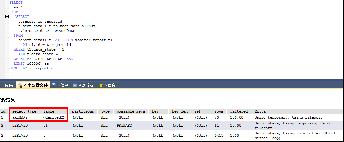 对比后发现执行解释中,加了limit 下面两个查询变成了DERIVED(被驱动的SELECT子查询)