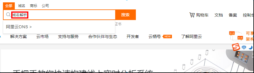 点击阿里云DNS>进入DNS控制台,选择对应的域名进行解析设置