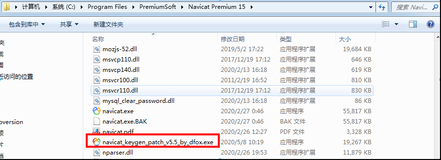 将注册机程序移动到navicat 安装包的根路径下,如图所示: