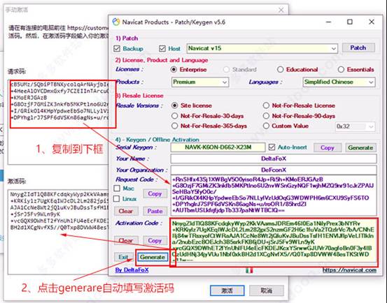 点击激活,将请求码复制到注册机中点击Generate生成激活码,可以看到激活码已经自动填充了,点击激活即可(激活后不要升级软件哈,不然你懂的)!
