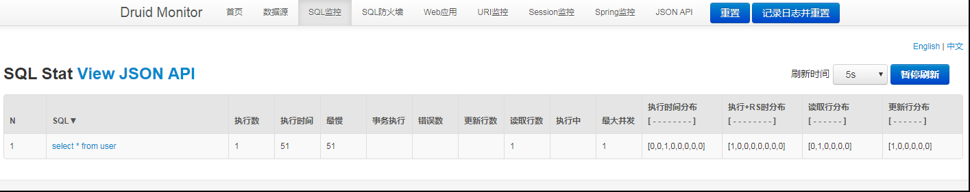 启动项目访问:localhost:8080/druid 输入用户名密码